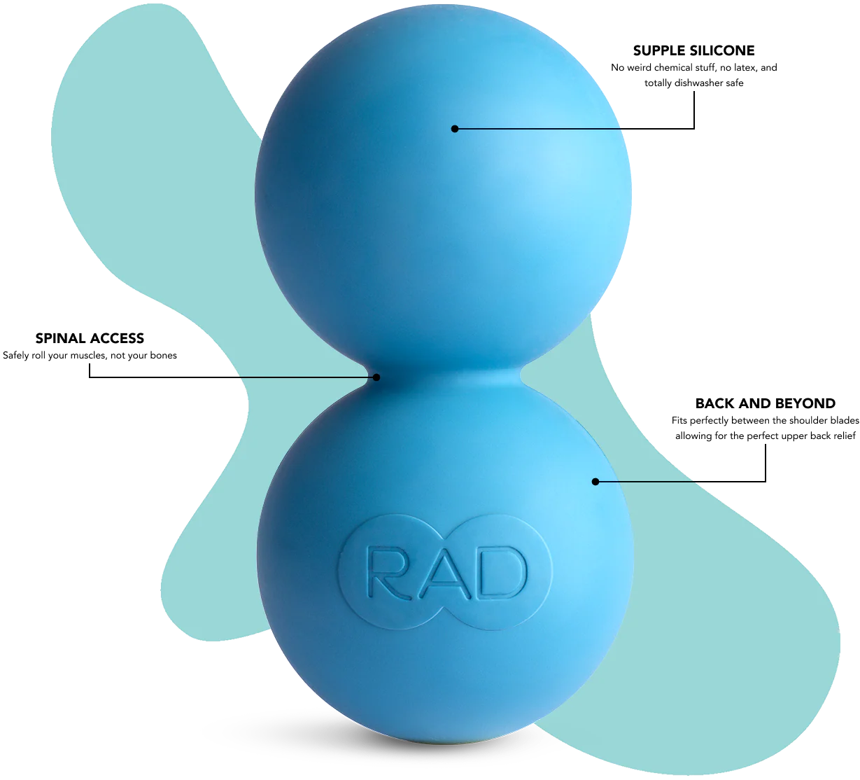 Made from patent-pending, 100% medical-grade silicone, RAD Roller can be used anywhere: on your back, at the office, on your thighs and at the gym, on your neck and in the car, on your forearms and at home.